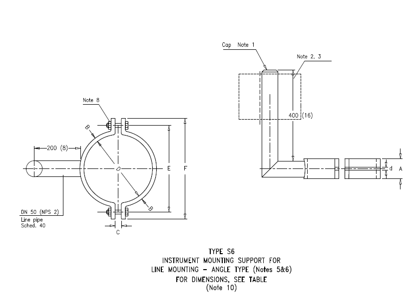 Instrumentsteun bevestigd op een horizontale leiding. Er zijn diverse diameters beschikbaar.